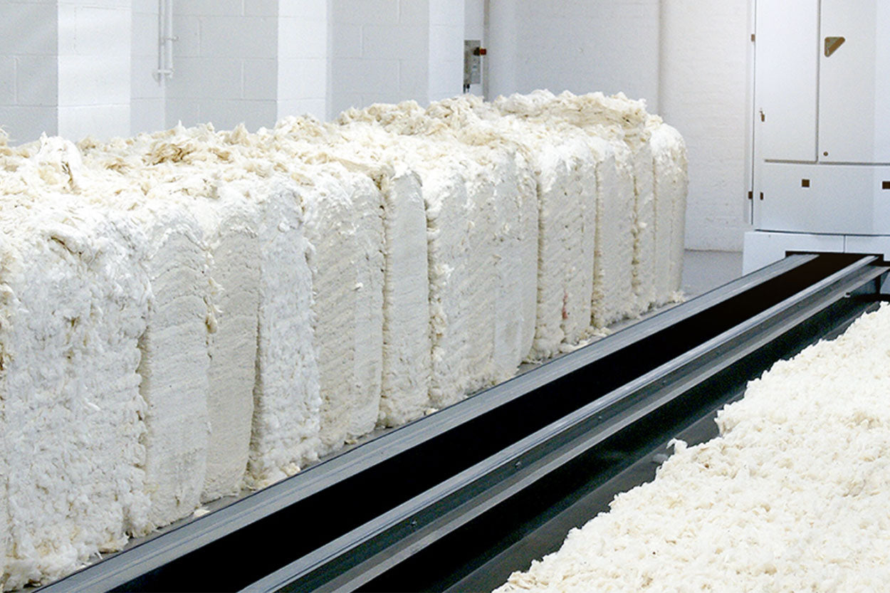 These are 250kg bales of the finest Supima cotton waiting to be spun. By removing just one bale and replacing it with inferior cotton, the feel and finish could be flawed.